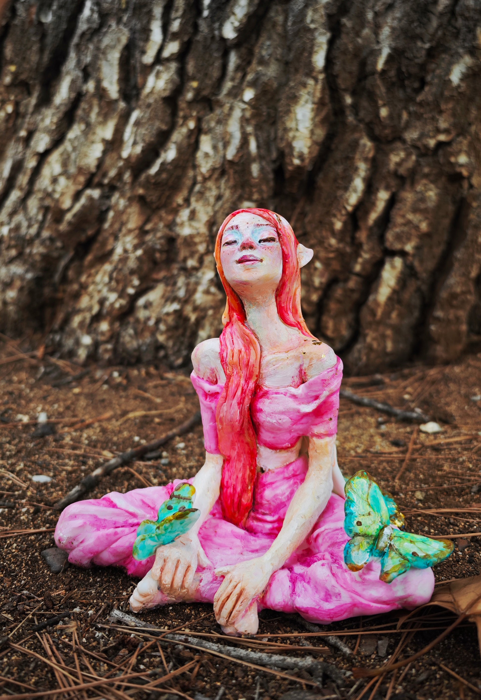 Meditando con sus ojos cerrados mi pequeña hada de la inspiración es un ser mágico que otorgan creatividad, ideas y motivación a los artistas, escritores y personas creativas. En la mitología, se dice que las hadas de la inspiración pueden visitar a aquellos que buscan inspiración y guiarlos en su proceso creativo. A menudo se las representa como seres luminosos y etéreos que susurran ideas y visiones a aquellos que están abiertos a recibirlas.
