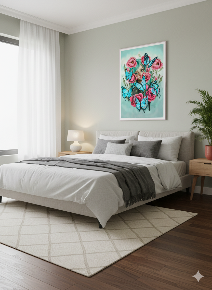 Juliana no es solo una lámina; es una inyección de color, alegría y fantasía. Perfecta para dar un toque artístico y audaz a tu salón, dormitorio o estudio.