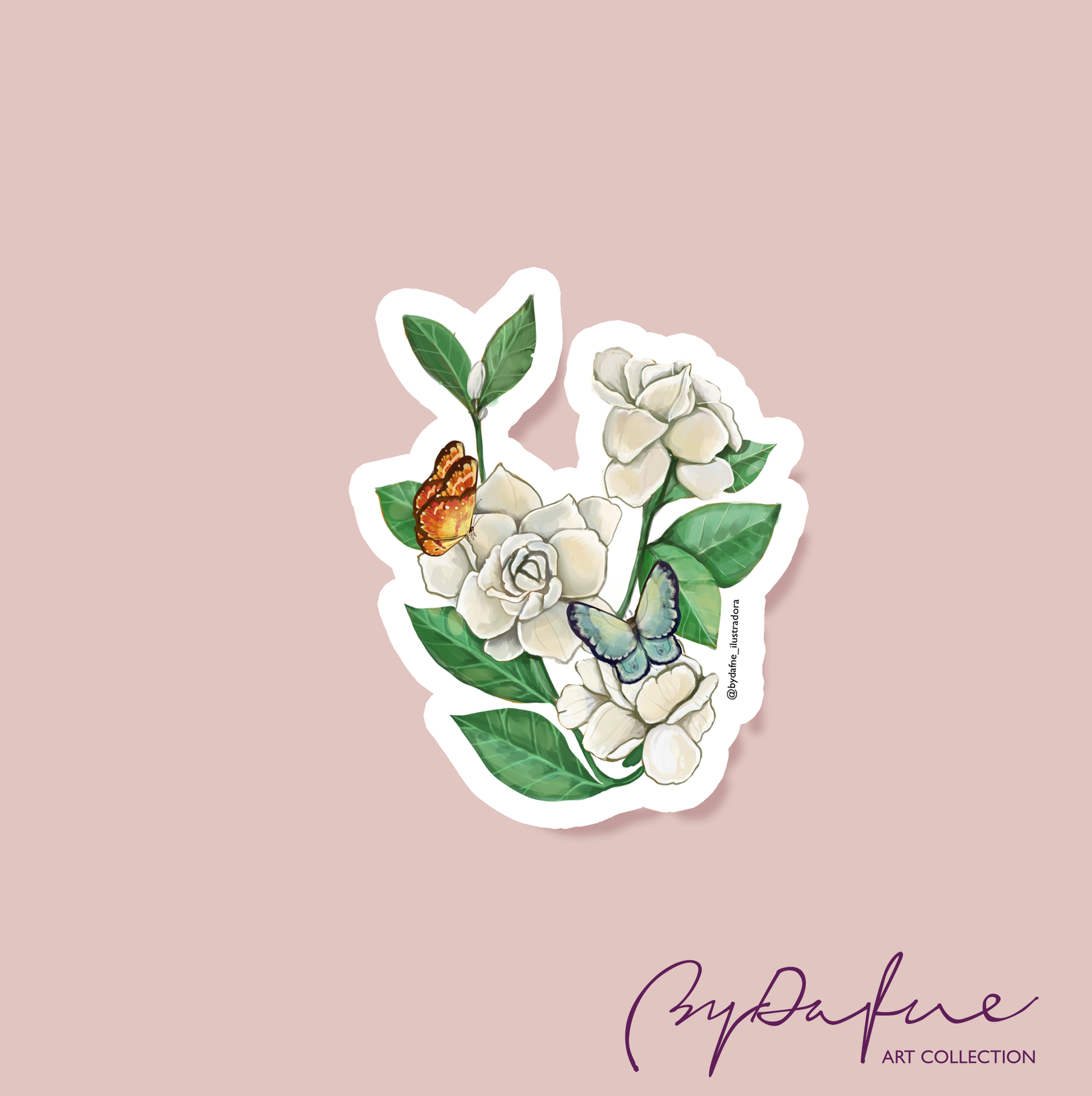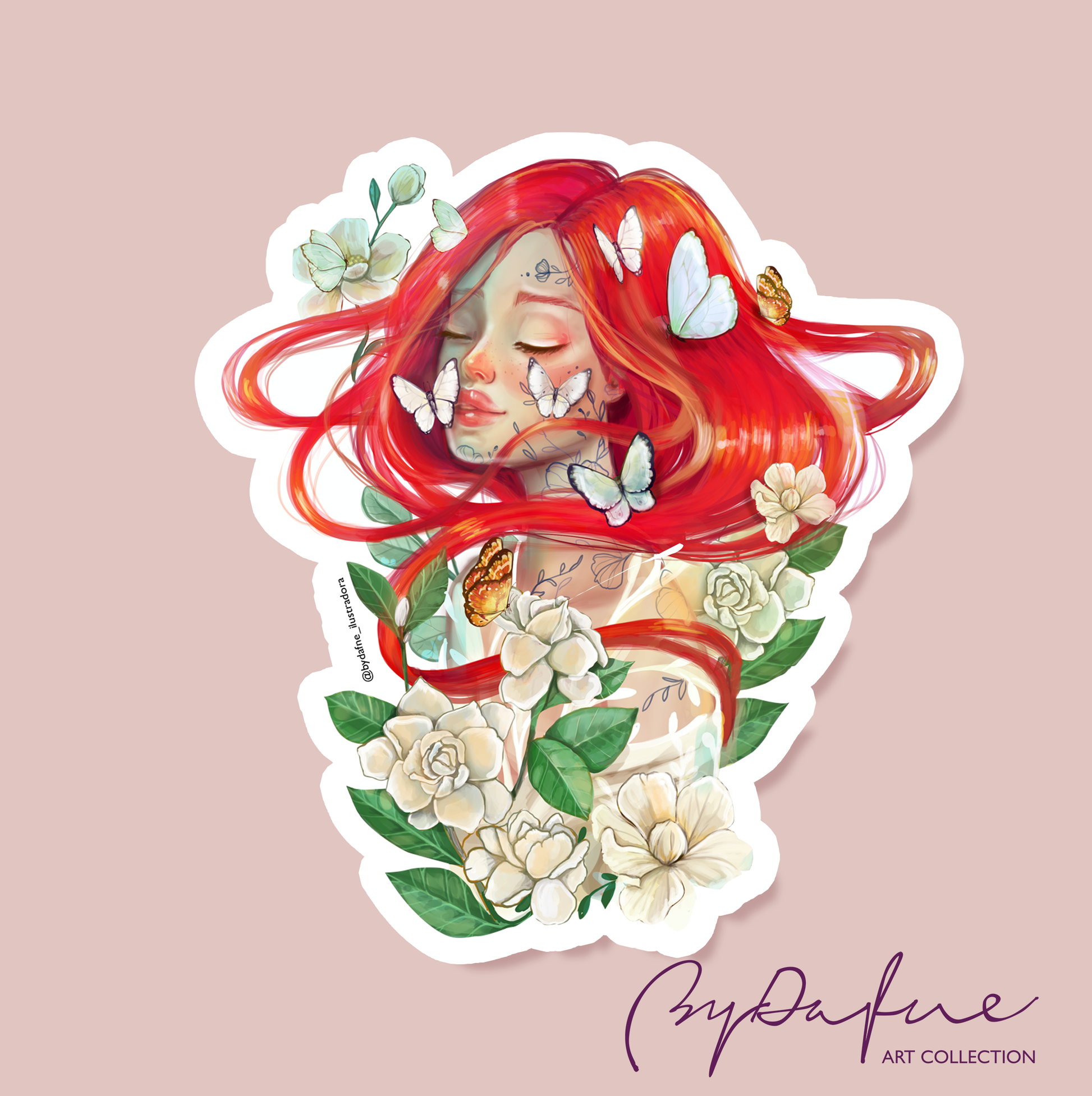 Esta pegatina captura ese instante donde mi dulce jazmín conecta con las mariposas y la fuerza y la delicadeza de las flores,